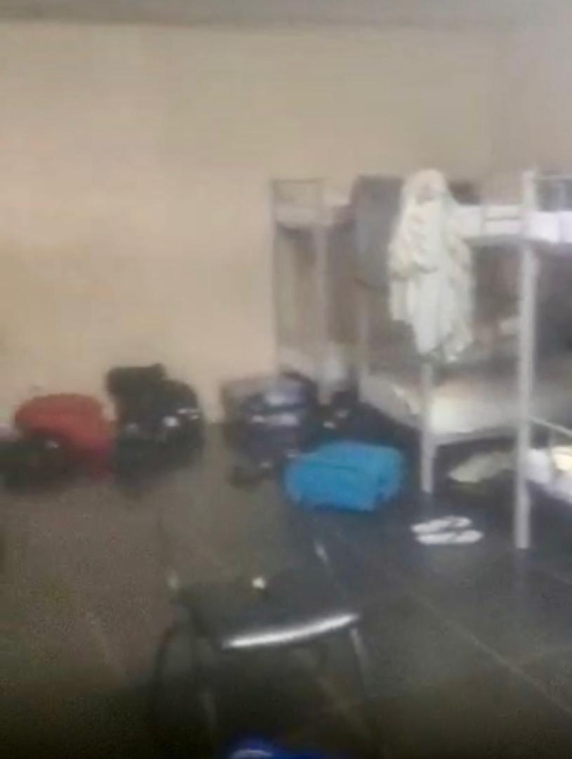Sur ce point, VIBRACTU a pu vérifier les faits. Une vidéo parvenue à la rédaction depuis Luanda montre une chambre exiguë, avec des lits superposés, peu adaptés au repos, et, au fond de la pièce, des toilettes sans porte.